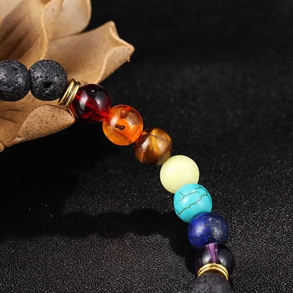 Vraťte do svého života harmonii a rovnováhu! Silná řada přírodních a lávových kamenů pro aktivaci čaker spojená v tomto luxusním náramku zajišťuje revitalizaci mysli i těla a vyrovnání vnitřní energie.