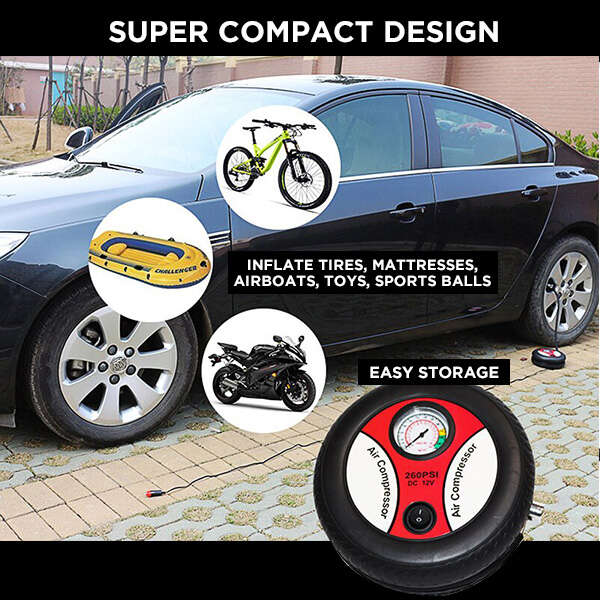Miniatura em tamanho, mas alto em desempenho - este compressor inflará tudo que você precisa sem esforço. Encha os pneus de um carro, moto ou bicicleta em poucos minutos.