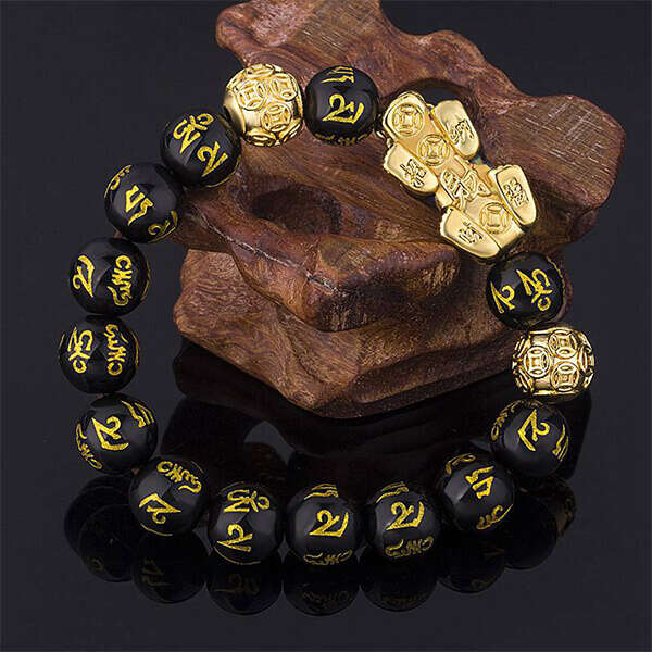 Prilákajte šťastie pomocou jedinečného náramku vygravírovaného starými tibetskými mantrami. Je vyrobený z obsidiánu, o ktorom sa predpokladá, že priťahuje pozitívnu energiu a myšlienky.